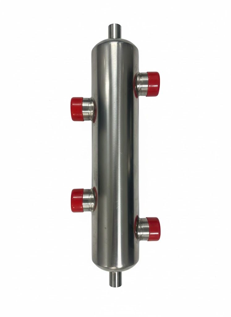 Bu yüksək keyfiyyətli Hidravlik Ayırıcı (və ya Dəngə Qabı) müasir, çoxzonlu istilik və soyutma sistemləri üçün əvəzolunmaz elementdir. Möhkəm, cilalanmış paslanmayan materialdan (nerjdən) hazırlanmış bu cihaz korroziyaya qarşı davamlılığı və uzun xidmət müddətini təmin edir.