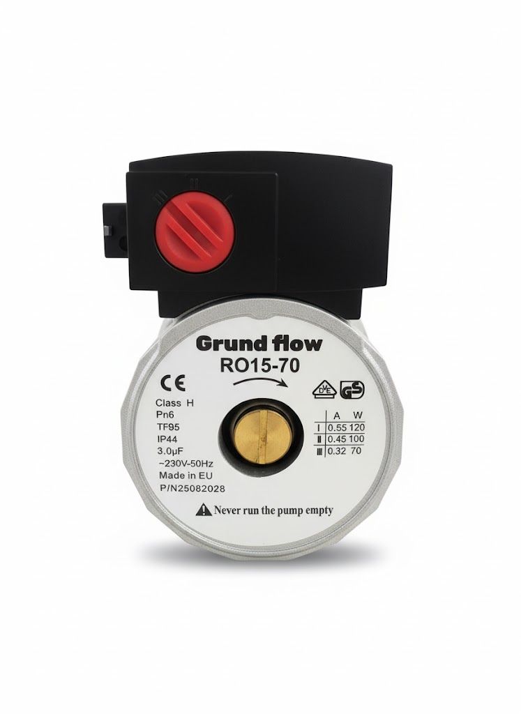 Насос Grund flow RO15-70, представленный на фотографии, — это циркуляционный насос, предназначенный для использования в системах отопления и горячего водоснабжения.